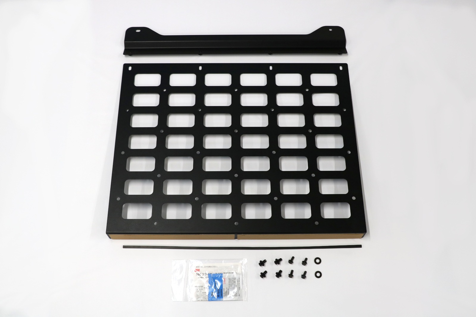 角穴と丸穴(M8サイズ)の開いたパネルに小物ケース等を取り付け、荷室の利便性を向上させる商品となっています。 ■ハイエースバン ■適合年式:13年11月~ ■適合グレード ・スーパーGL リヤクォーターパネル部装着可(運転席側/助手席側共に可) ・MRTtypeⅡ シングルベッドキット・ベッドキット装着車 (運転席側のみ可) ・MRTtypeⅡ ベッドキット非装着車(運転席側/助手席側共に可) ■耐荷重:5kg ■製品個数:1枚入り