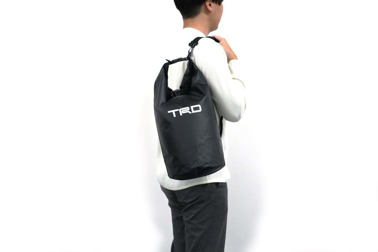 半防水のしっかりした生地と開口部の防水補強のバッグ。 緊急時にはバケツや空気枕としても使えます。 使用しないときにはコンパクトに畳むことも可能です。